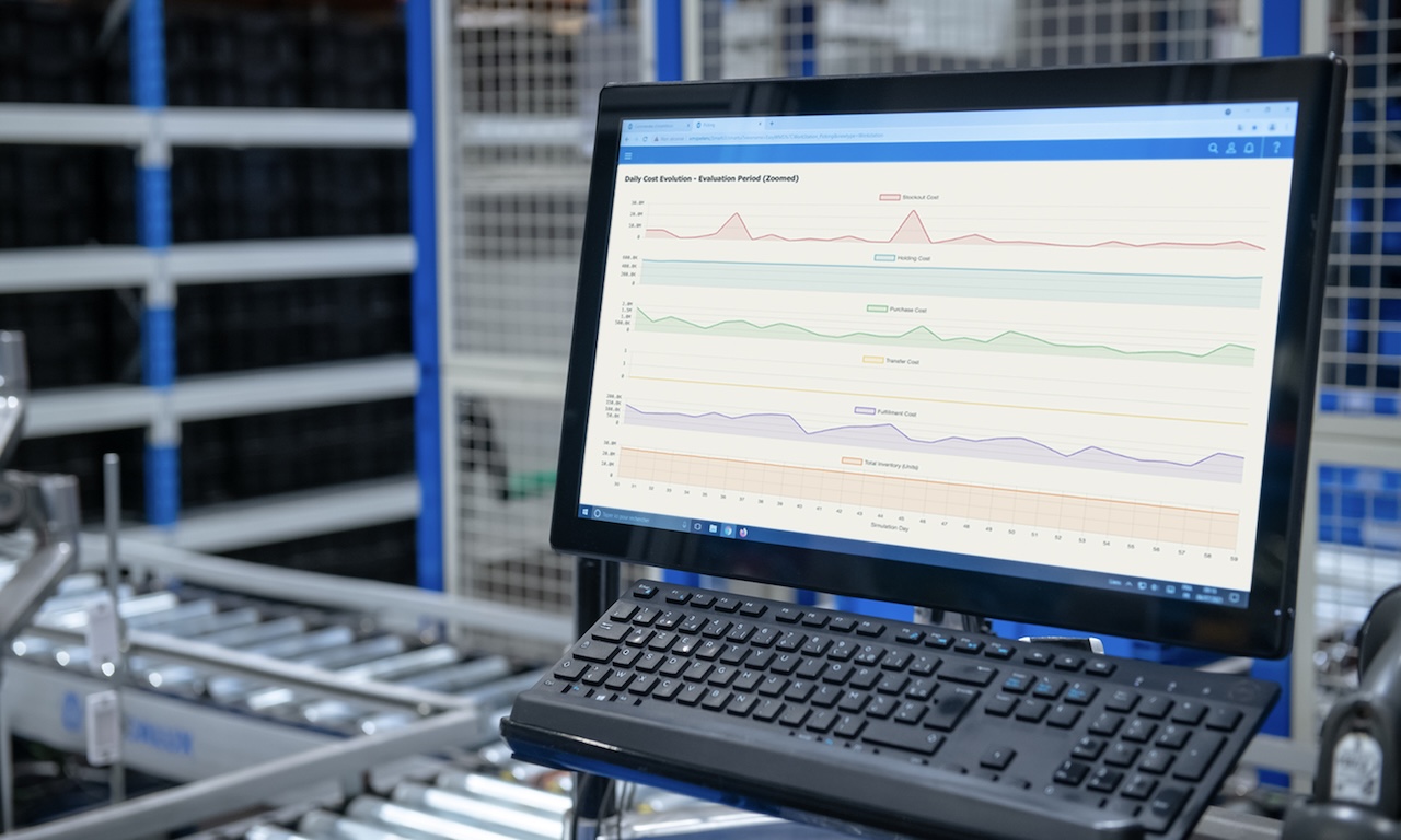 The AI-based simulator takes into account variables such as forecasted demand in each region, transportation costs, and the operational capacity of each warehouse to test various inventory replenishment policies without affecting real-world operations.